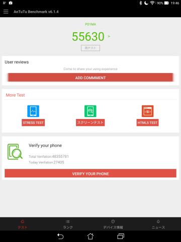Antutuを使ってAndroid側でもベンチマークを取ってみました。
