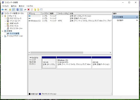回復ドライブでディスクを初期化してWindowsのシングルブートにはできました。