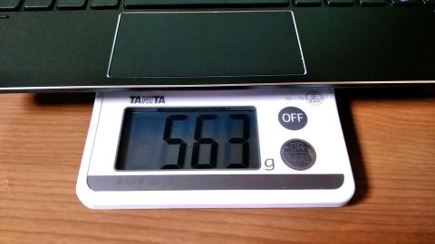 キーボードの重量は563g、サイズが小さいので重く感じます。