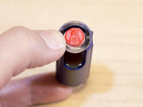 先端が押し込まれる事で、印面が中で回転して外側に向きます。