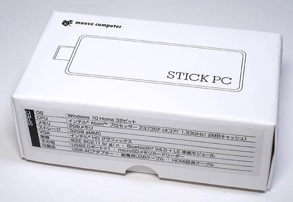 2014年末に発売されたスティック型PC MS-NH1 の OS を Windows 10 Home に変更したモデルです。スペック上は、OS 以外全て同じです。