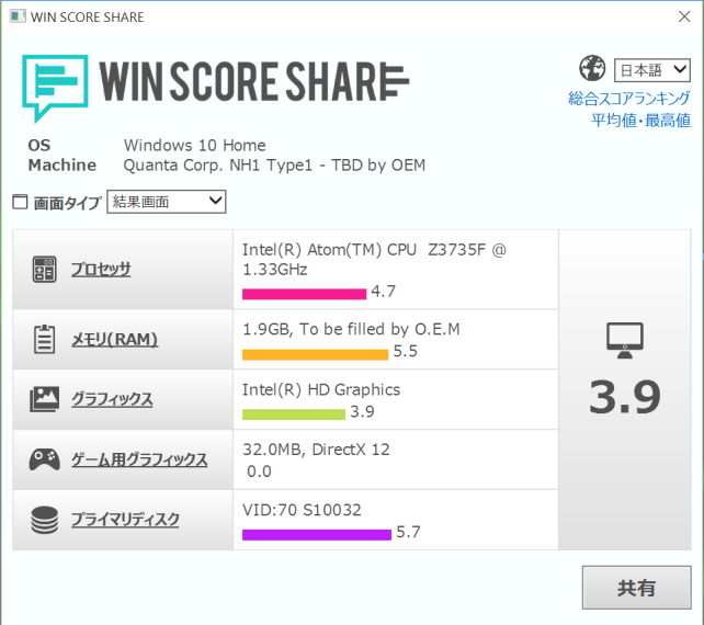 Windows エクスペリエンス インデックス [WIN SCORE]