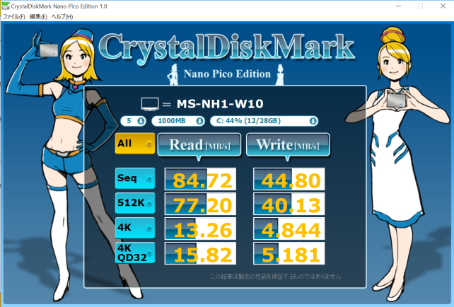 ※MS-NH1 は、Windows 10 にアップグレードしてもベンチマークは結果は変りませんでした。