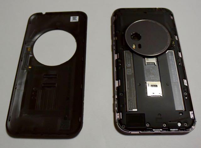 脱着式の背面カバーを外すとSIMカードスロットとMicroSDカードスロットが出てきます。