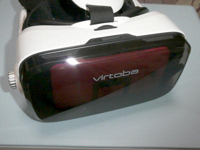 VRゴーグルのフロントを開いて、内部にあるイヤホンケーブルをpriori2に接続します。