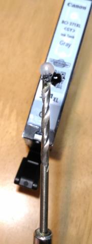 穴あけドリルで無理やり外しました。再利用するので貫通させないでこんな感じに外します。