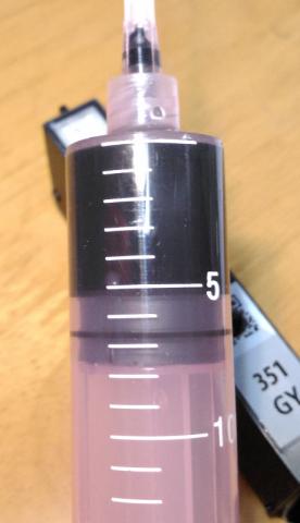インクの移植にはコスメティックシリマーを使用して、BCI-371からインクを吸い上げます。
