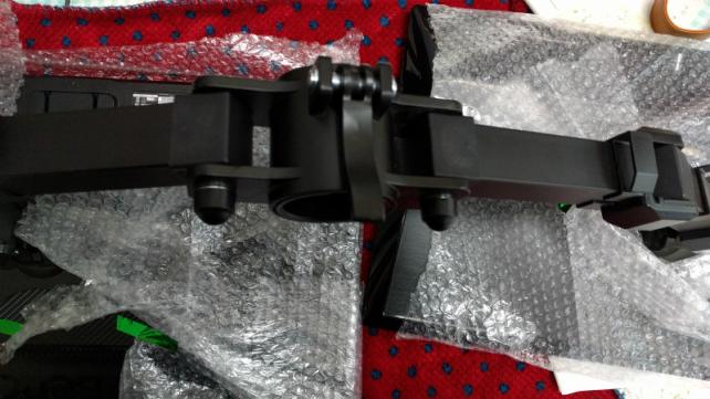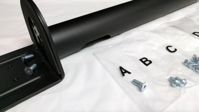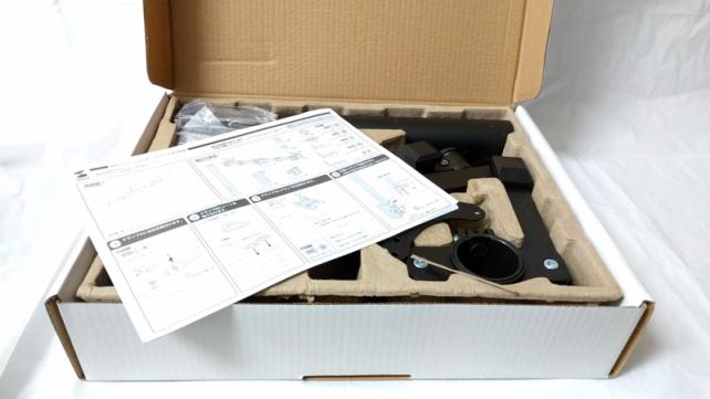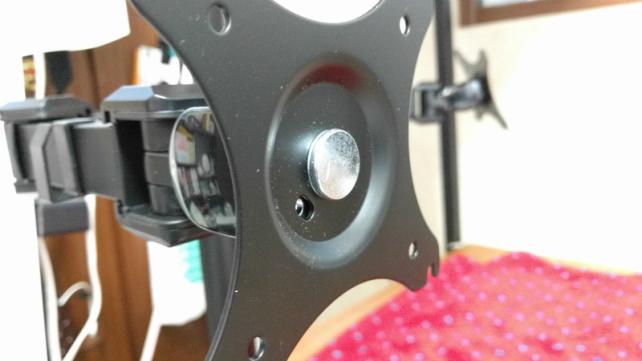 アームに2画面先に取付けてから支柱に設置する方法です。