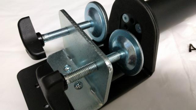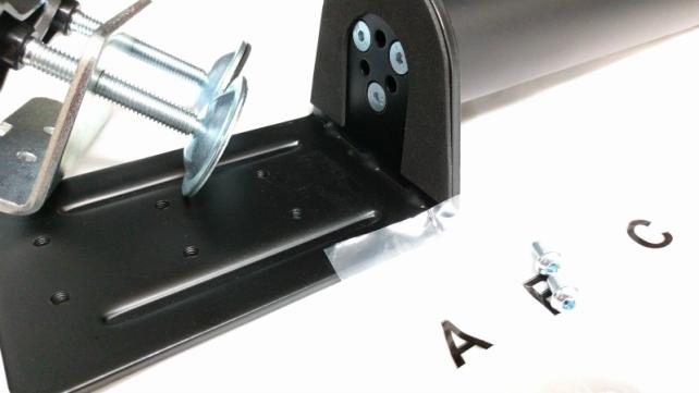 1.上クランプに支柱を取り付け。ネジはAネジ。付属の六角レンチで締付けます。