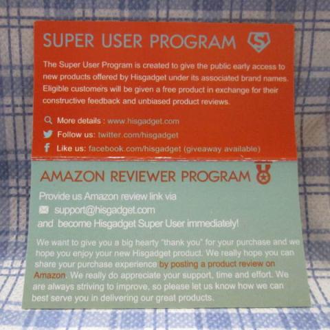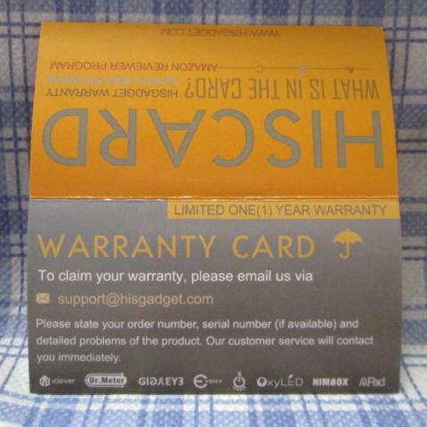 保証カードは Amazon でレビューしたら連絡してよ、とか、1年保証だよ、などと書いてありました。