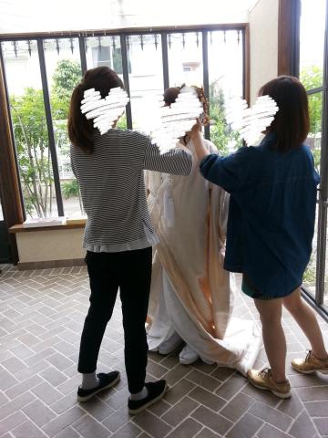 ちなみに、着付けに関してですが、和装が終わった後の洋装チェンジも大変早かったです。着脱は、あっという間でした!後ろが編み上げになっているドレスだったので、おなかもおさまりましたし、二人がかりでお腹が苦しくない程度にきっちりと後ろを編み上げていただき、きれいにドレスを着ることができました!素敵に着付けてくださりありがとうございます。女性のウェディングドレス専用の上下に分かれた下着も用意してくださり、こちらは何も準備していないのに、あっという間にウェディングドレスの花嫁さんになっていました。