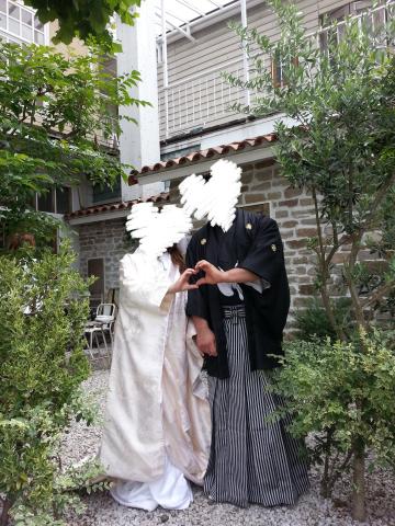 実は、行ってみてわかったのですが、サロンドパルールさんの方でも本来の予定の和装に加え、花嫁オンリーの洋装1パターンだけでも撮影して下さる予定だったそうで、夫の持参したスーツがあるならこれ幸いと和装の2人、洋装の2人、の2パターンも撮影していただくことになりました。すごい!夫のスーツ、持っていくだけ持って行ってよかったです♪