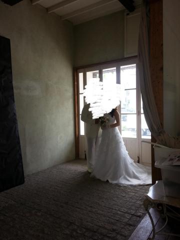 ウェディングドレスを着ることは、女性の小さい時からの憧れとよくいいますが、メイク&着付けが完了したときは、真っ白な衣装に包まれてなぜか心まで純白な気持ちになりました。きっとカラードレスでは、味わえない感情かもしれません。窓から燦然とあふれる光のシャワーにも、二人の未来は明るいなーと幸せでぼーっとしたなんともいえない高揚感に包まれた気持ちになります。