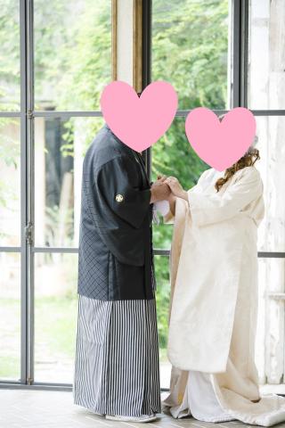 二人共白無垢、紋付袴を着付けてもらって、早速撮影です♪