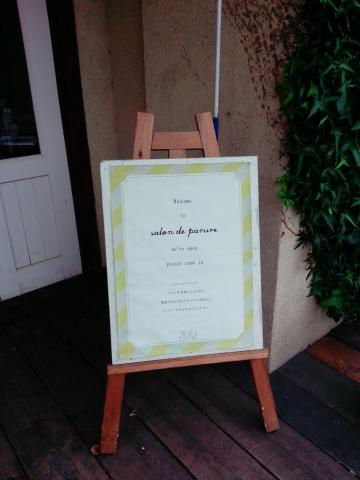 正面はレストランだけかと思いそうですが、ありました。サロンドパルールさんの掲示板!