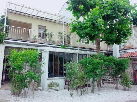 見た目はレストランが併設された2階建ての一軒家風で、その中には3つのスタジオがあり、さまざまなシチュエーションの撮影に対応できます。平日は主にプロ向けに雑誌やCM撮影にレンタルしているロケ地ということで、期待に胸を膨らませて入ります。土日、祝日が私たちのように一般利用できるスタジオです。この日は快晴の日曜日!