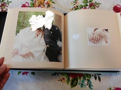 背表紙も、オーダー通りに、結婚記念日と、Weddingの文字と、夫婦の名前がそれぞれ