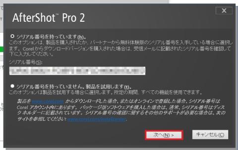 AfterShot Pro 2 のシリアルを注意深く入力します。