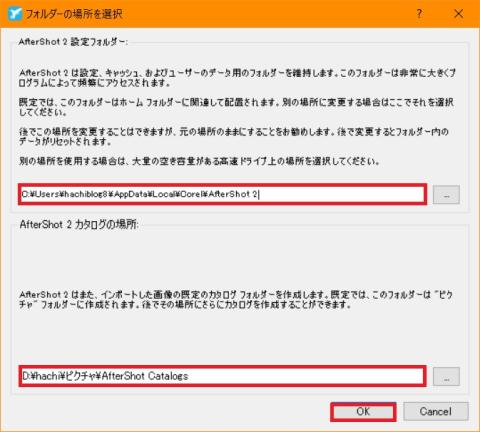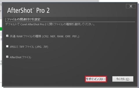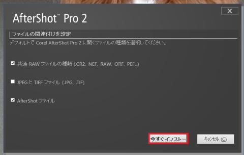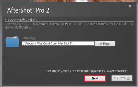 AfterShot Pro 2 のインストール先の指定です。