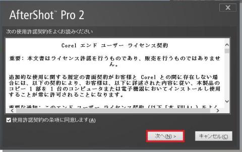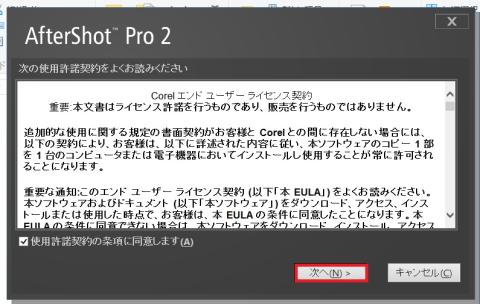 「AfterShot Pro 2」の使用許諾の画面です。
