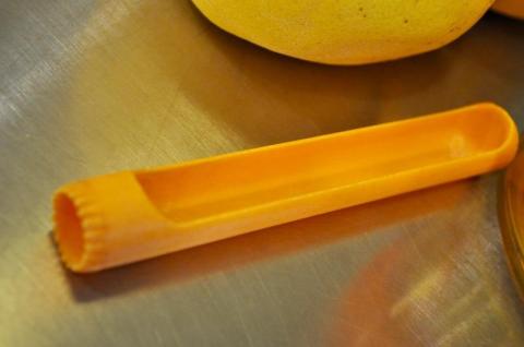 これが繰り抜き棒 半分に切り分けた果実の芯の部分を、繰り抜きます