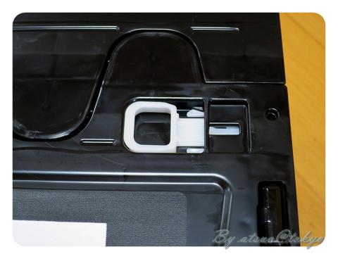両脇にあるロックを内側にスライドすると解除され、外側にスライドするとロックされます。