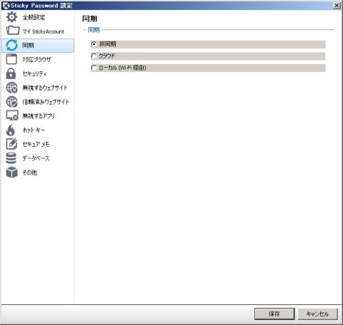 登録したIDとパスワードは通常時に使用するローカル、バックアップ、複数台にインストールしたときのクラウドサーバーに保存する。わたしは以下の同期設定を非同期にして、クラウドサーバーにはパスワードの保存を行わないようにしている。