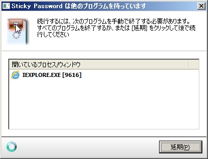 インストールを行う際は以下の画面が最初に表示される。このときにIEが起動しているとインストールが停止します。FireFoxも停止すると思いますが、Chromeの場合にどうなるかはインストールしていないため不明。設定画面を見る限りではChromeは対応していなさそう