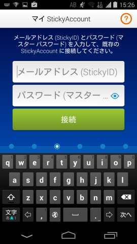 すでにPCでインストール済みのため、PCインストール時に設定したIDとパスワードを入力することで行える。既存アカウント接続を選択。