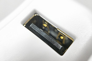 本体は昔のビデオ用バッテリーのような形状で色はホワイトです。さすが三洋電機製というだけあって、作りも仕上げも良く、怪しいメーカーのモノと比べたら雲泥の差と言えるほど完成度の高いモノとなっています。