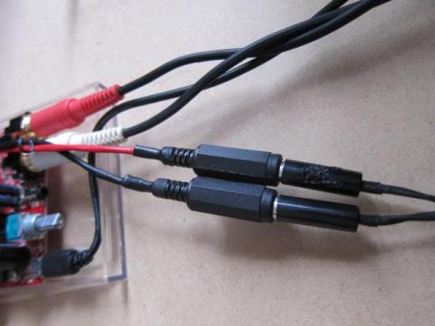 端子は,Hot(L)/Cold(L)/Hot(R)/Cold(R)の順に並んでいます.そのままmogami2977で引き出して,2.5mmモノラルジャックをハンダ付けして終了.
