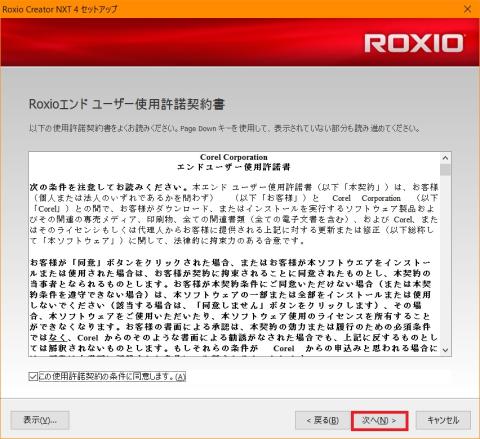 「ソフトの許諾」なので、良く読んで”次へ”をクリックします。