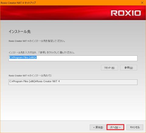インストール設定を確認・変更をする場足は”戻る”、インストール開始は”インストール”、ウィザードを中止する場合は”キャンセル”です。