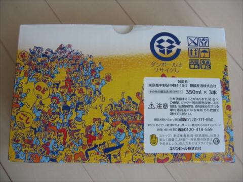 キリンの発泡酒です 誰でも貰えるキャンペーンですが...最近はお酒に弱いので350ML缶でも酔いまする...(#^.^#) で、絶対貰えるキャンペーンのハガキをスーパーで発見、毎日飲んでいることですし、ハガキを貰って来たらカミさんが応募したようです ある日、宅配便屋さんが届けてくれました 昔はビールじゃなかなか酔わなかったのに最近はダメですね...翌日に残るくらいです..(^^♪