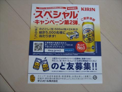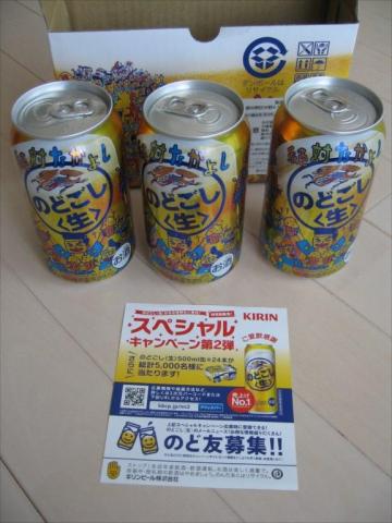 カミさんは缶についているシールを剥がして48枚も貼って出したんですね 私一人で48缶飲んで応募したわけです のどごし<生>って割とさっぱりしてるし飲みやすいです。