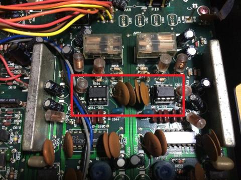 といっても基板全体にアクセスできるわけではないですが、オペアンプはぎりぎりアクセスできるので、ここで作業を進めてしまいます。