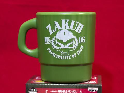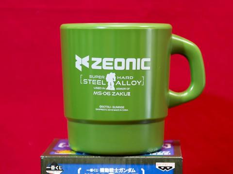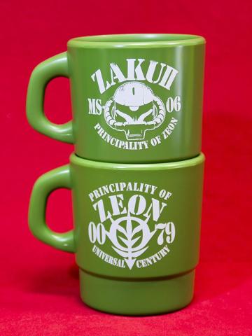 ザクフェイスとジオンマークの全2種で、重ね置き(スタッキング)出来る樹脂製のマグカップです。