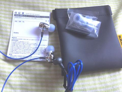 これが内容物の全てです。交換用イヤーピースと保証書、キャリングポーチというごく標準的な構成となっています。