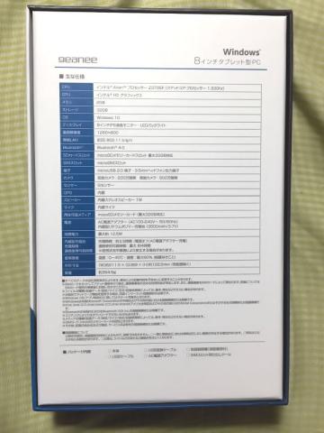主な仕様は箱の裏面に記載されています。