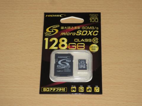 HIDISK製のmicro SDXC UHS-I 128GBカード。
