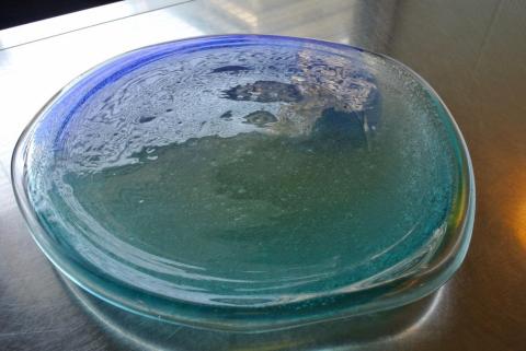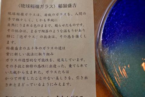 琉球ガラス現代の名工稲嶺盛吉さんが運営する宙吹きガラス工房・虹で売られている「泡皿」です。