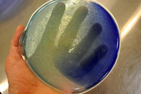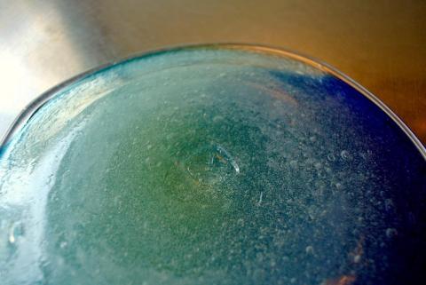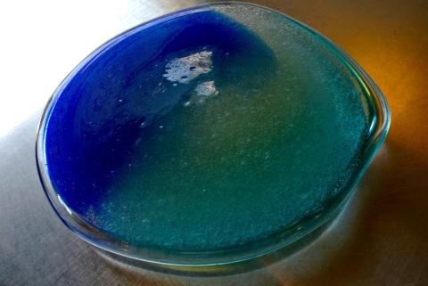 この青い泡皿は、光の加減で様々な色合いに変化します。