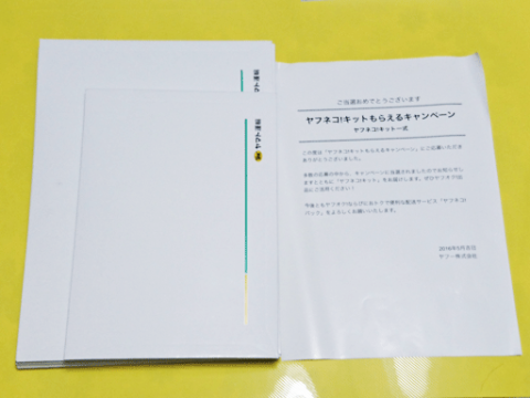 「ヤフネコ!キットもらえる」キャンペーンにて、応募者から抽選で10000名がもらえた「ヤフネコ!キット」です。