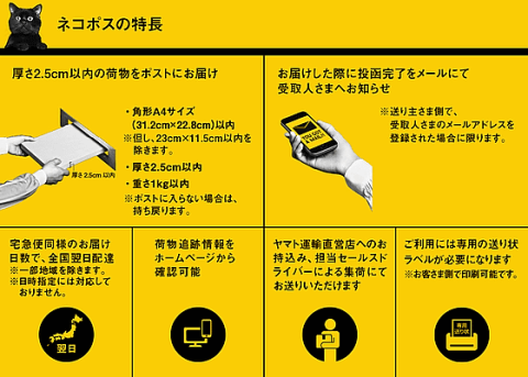 「ネコポス」は全国一律205円で利用可能となっており、従来のヤマト運輸直営店での取り扱いに加えて、3月14日からは全国約11,500店のファミリーマート店舗で受付を開始しています。