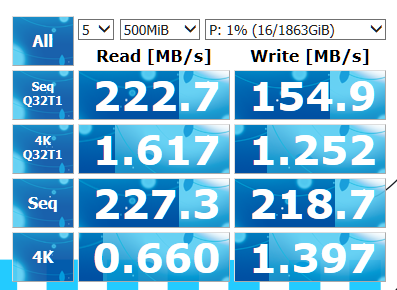 ただし、速度を重視する程の読み書きを必要とするアクセスは、倉庫用HDDには必要無いかな、という事で、バックアップの速度重視という形にしています。