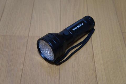 ブラックライト言えば、小ぶりな製品が多い中、この製品は懐中電灯サイズです。その分、照射面積も大きくなります。