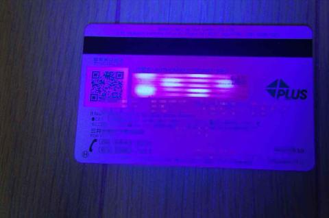 クレジットカードでも、このようにライトを当てることで、光ります。