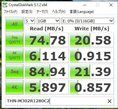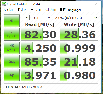 CrystalDiskMark Ver.5.1.2で計測してみました。