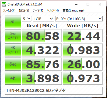 リードは最大90MB/sなのでこんなものかなと思いますが、