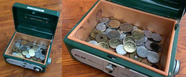 「金庫」と言うよりは「貯金箱」で、上の投入口から各種コインが投入出来ます。